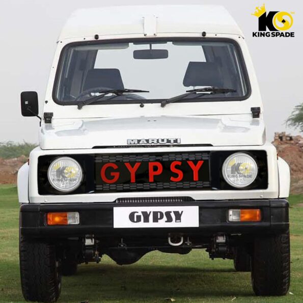 - The KINGSPADE modified front show grill is likely designed with a custom or unique appearance that differs from the stock/original Maruti Gypsy grill. It may feature different patterns, shapes, or materials, offering a more personalized look.